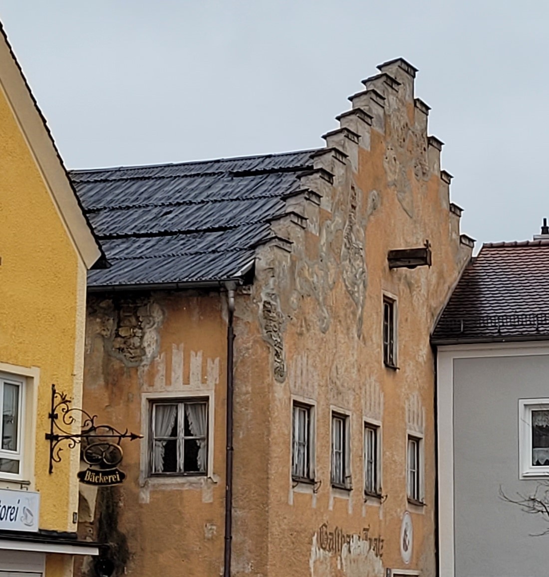| Beschreibung in Denkmalliste: | D-3-73-121-7; Ehem. Gasthaus, zweigeschossiger und giebelständiger Flachsatteldachbau mit Treppengiebel, im Kern 1464 (dendro.dat.), Überformungen des 17.-19. Jh. |