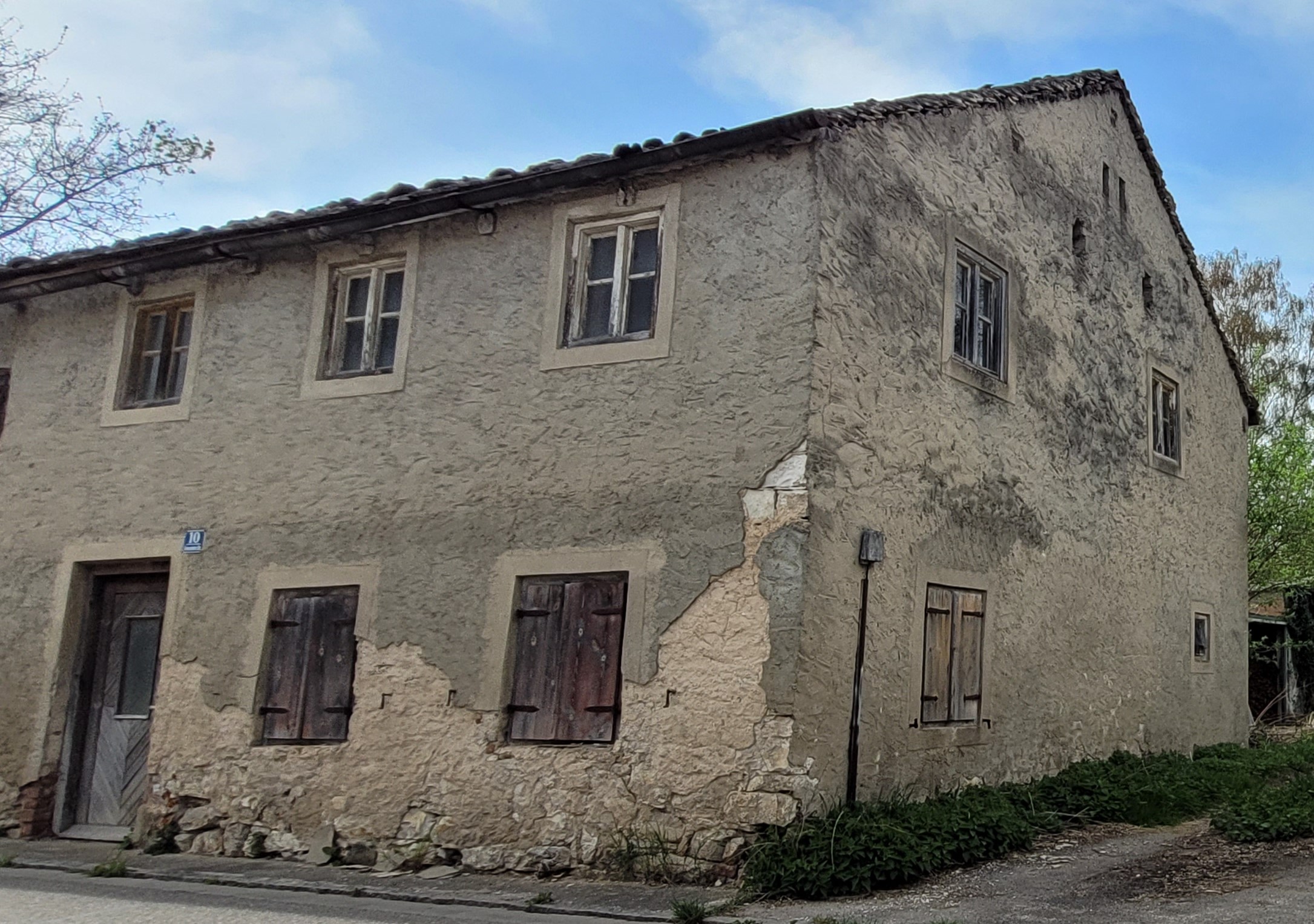 | Beschreibung in Denkmalliste: | D-3-73-121-5: Wohnstallhaus, zweigeschossiger und traufständiger Flachsatteldachbau mit Kalkplattendeckung, 19. Jh. |