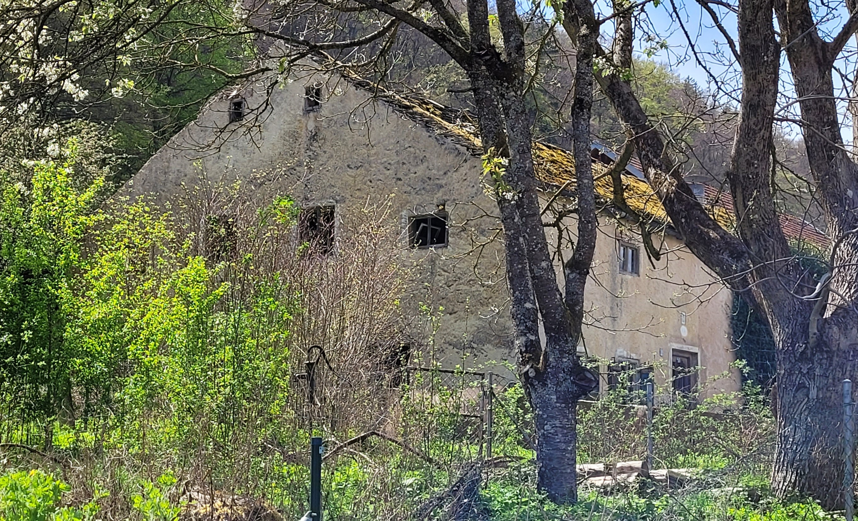 Beschreibung in Denkmalliste:D-2-73-164-135: Bauernhaus, eineinhalbgeschossiger traufständiger Satteldachbau, in Jura-Bauweise mit Kalkplattendach, 1. Hälfte 19. Jh.