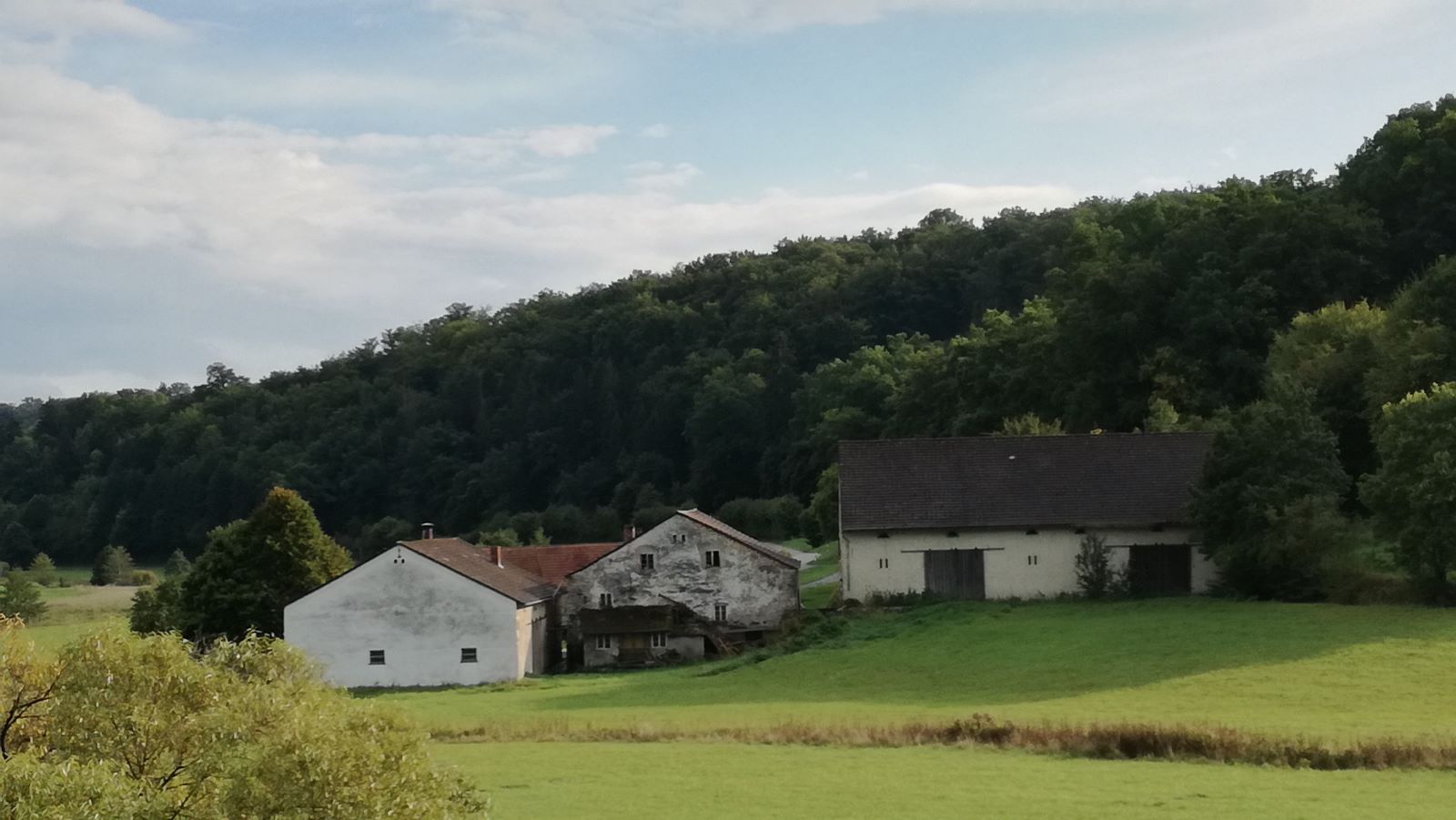 Beschreibung in Denkmalliste:D-1-76-164-23: Aichmühle, Wohnhaus und Mühlgebäude, zweigeschossiger giebelständiger Satteldachbau mit runder Aufzugsluke, Putzbandgliederung, Sonnenuhr und originaler Haustür, erbaut 1848; Zuhaus (Korb), zweigeschossiger Satteldachbau auf Bruchsteinsockel, mit Kalkplatten, Obergeschoss mit Fachwerk, 18. Jh.; angebaute Hofkapelle, kleiner Satteldachbau mit Kalkplatten, 19. Jh.