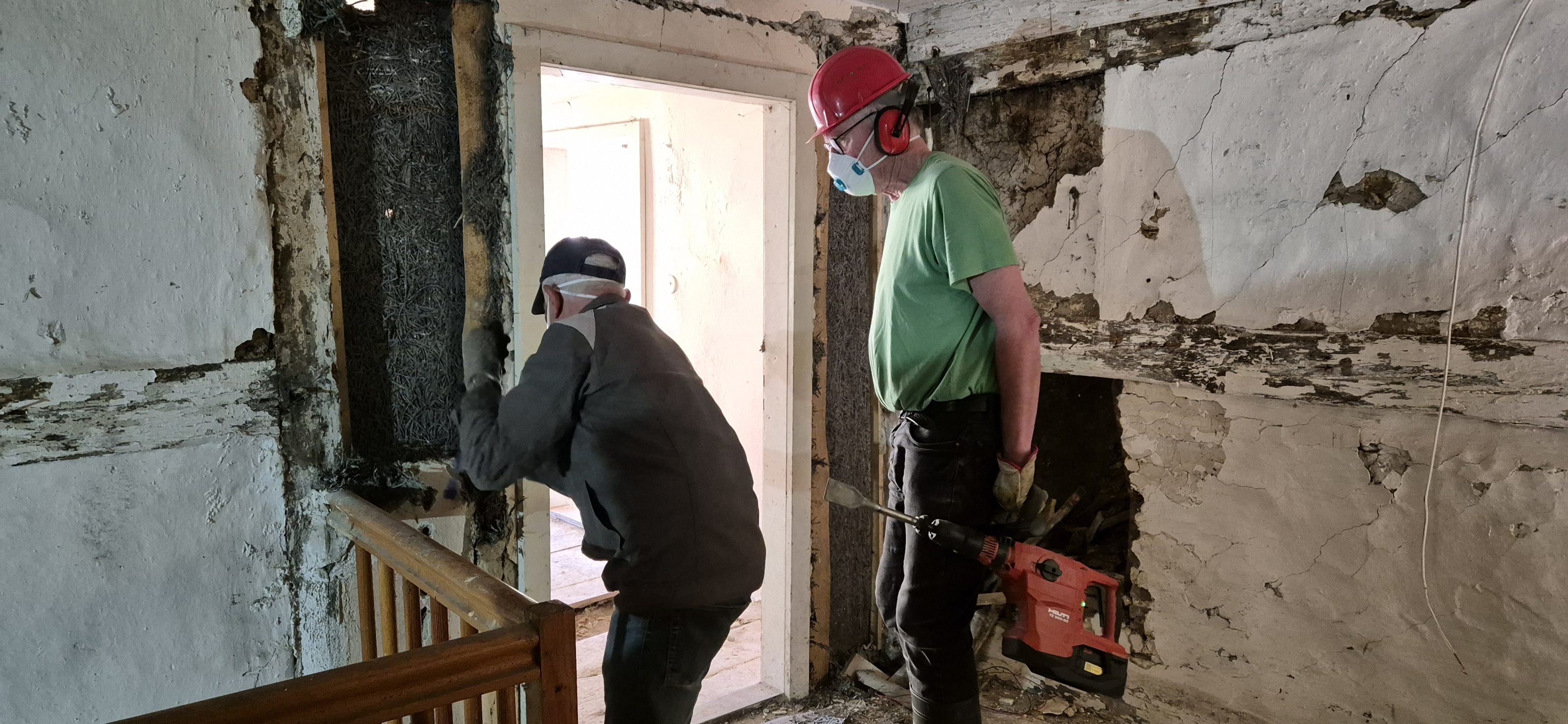 Wir entschlossen uns, die Sanierung ins Auge zu fassen. Angesichts unserer sehr begrenzten Eigenmittel ist das Ziel die statisch-konstruktiven Ertüchtigung der beiden Häuser und die Instandsetzung der Fassaden. Damit die Häuser wieder gut dastehen und sich Liebhaber finden, um sie fertigzustellen und dort zu leben.