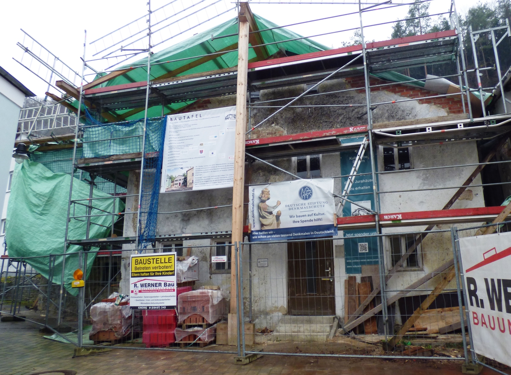 Das baulich verbundene Ensemble aus zwei Jurahäusern, erbaut 1416 und 1723, wird derzeit vom Jurahausverein instandgesetzt. Gezeigt werden die Problembereiche der Sanierung und der bisherige Sanierungsfortschritt.